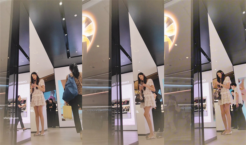 【CSCD】白色连衣裙身材特别好美女一个人逛街 紫色内内