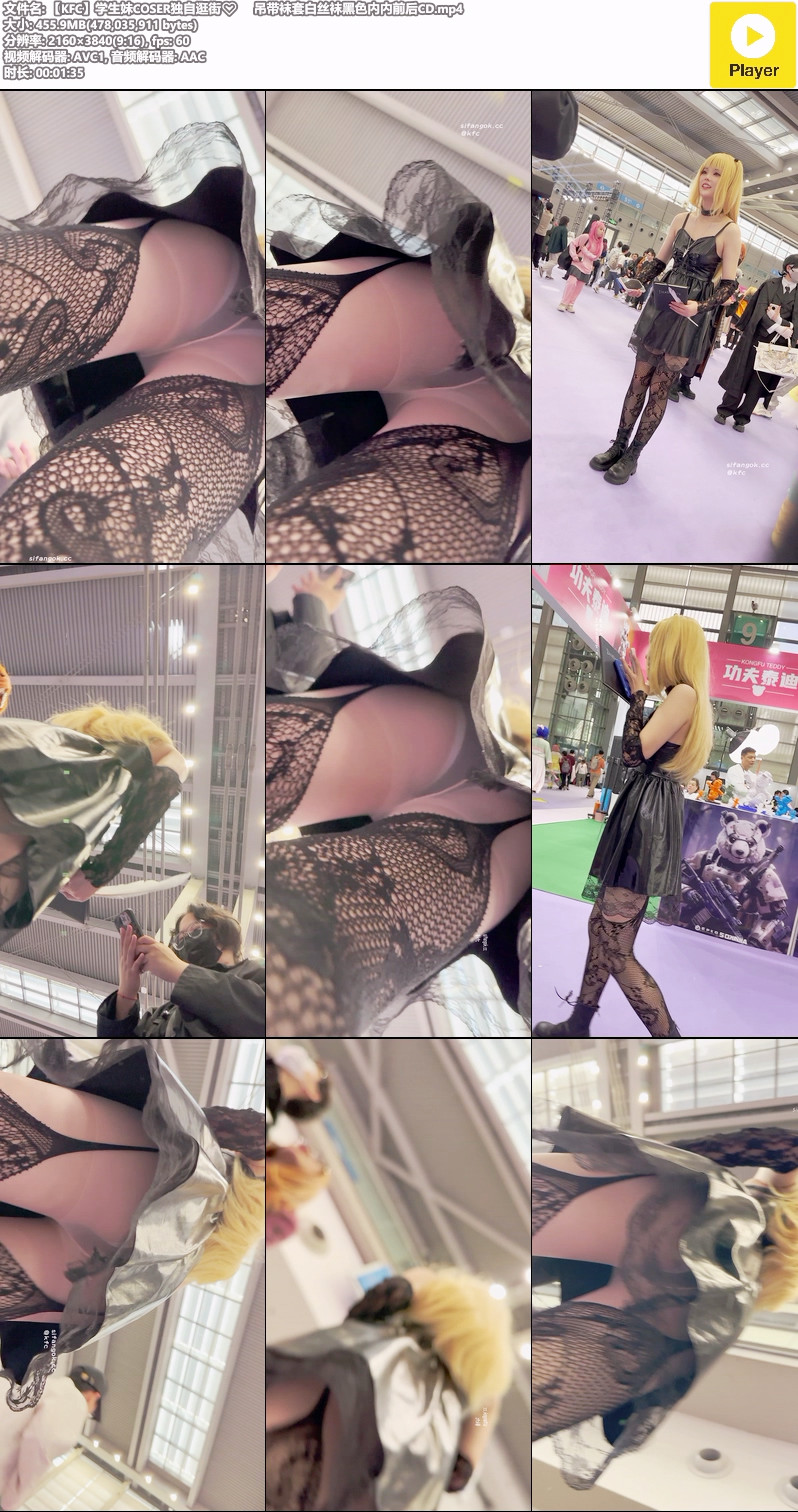 【影片名称】:【KFC】学生妹COSER独自逛街 吊带袜套白丝袜黑色内内前后CD